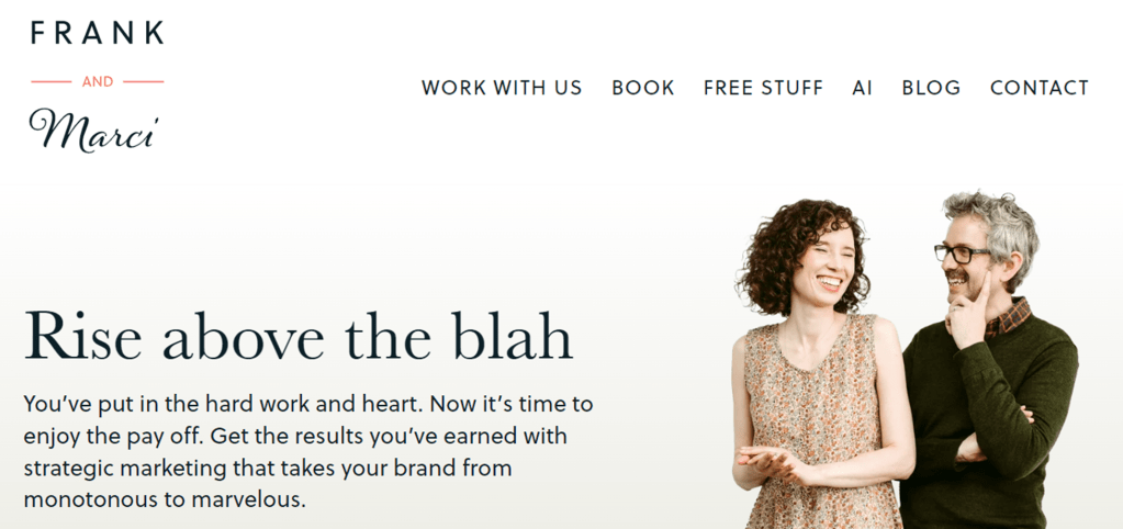Now imagine they were talking about you. What might others say about you? One way Frank and Marci recommend finding the words for this is to dig through your testimonials. Find those nuggets and adapt them to use in the headlines and text at the top of your pages.